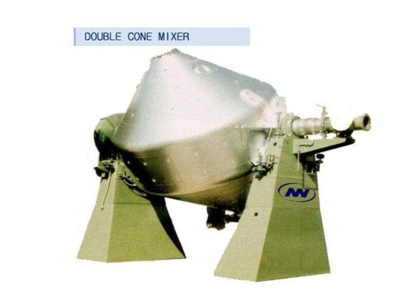 DSH 系列混合机筒内两只非对称螺旋自转将物料向上提升,转臂慢速公转运动;使螺旋外的物料,不同程度进入螺柱,从而达到全圆周方位物料的不断更新扩散,被提到上部的两股物料再向中心凹穴汇合,形成一股向下的物料流,补充了底部的空缺,从而形成对流循环的三重混合效果;标准型锥形螺旋混合机有两根搅拌螺旋,实际应用中根据设备规格大小可以采用单(一根长螺旋)、双(长短各一两根不对称螺旋)、三(两短一长对称布置)根螺旋;理论上搅拌螺旋越多,混合效果越好;设备一般采用梅花状“错位阀”,此阀与长螺旋底部贴合紧密,有效减少混合死角,驱动形式有手动和气动可选;根据用户需要,也可加装蝶阀、球阀、星形卸料器、边出料等常州华盈生产的双锥混合机广泛用于化工、农药、染料、食品、饲料、建材、稀土等粉体与粉体(固—液)的混合。该机对混合物料适应性广,对热敏性物料不会产生过热,对颗粒物料不会压馈和磨碎,对比重悬殊和粒度不同的物料混合不会产生分屑离析现象;该机根据工艺要求可在混合机筒体外增加夹套,通过向夹套内注入冷热介质来实现对物料的冷却或加热;冷却一般泵入工业用水,加热可通入蒸汽或电加热导热油。