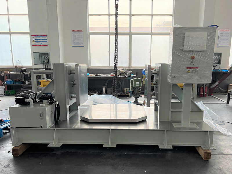 主机工作时,放入待挤压破碎物料,左右 油缸顶出,对结块物料进行高压力、大行 程挤压,将大块物料挤碎或者蓬松,初次挤 压后,底座旋转 45°或 90°,再次挤压, 直到吨袋内物料酥松以便顺利排料,然后 底座旋转回零位,完成一个挤压周期。