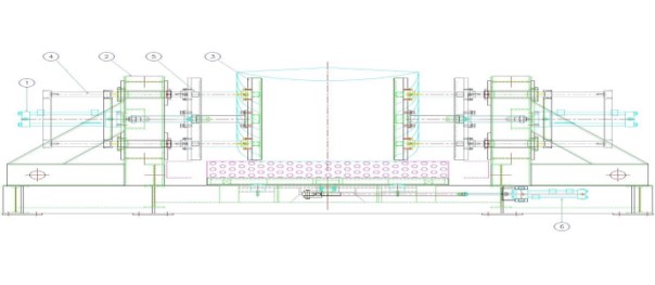 1.挤压油缸 2.主体支架 3.挤压面板 4.导向轨道 5.挤压定位板 6.旋转液压系统