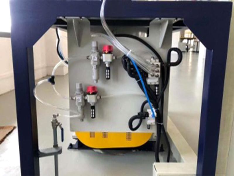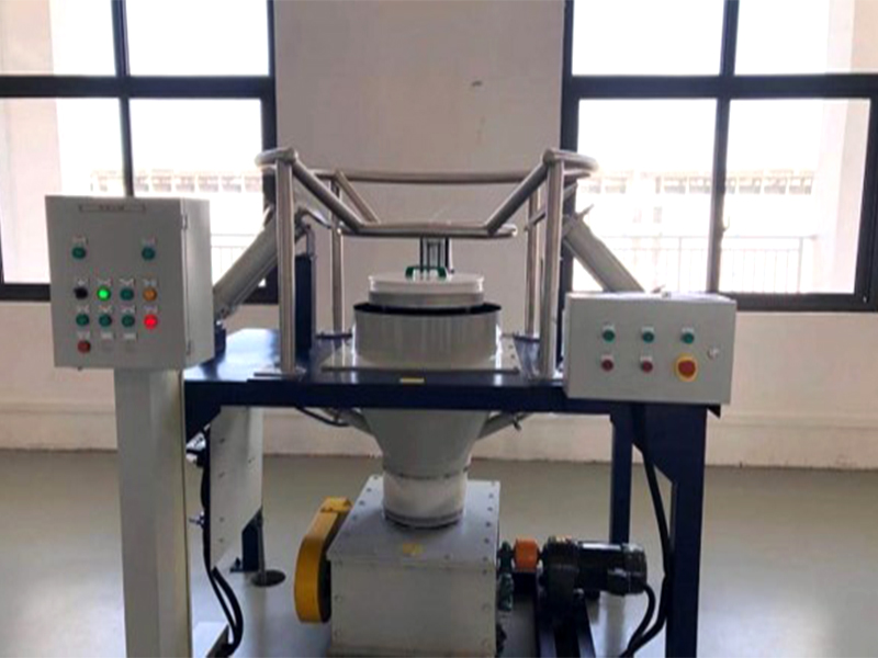 开袋站由气缸,料斗、支持架、底座组成。工作时由支持架支持住吨包袋,抱箍抱紧袋口, 气缸对结块物料反复挤压,从而把袋子中物料顺利到人料斗中输送到下个工序。